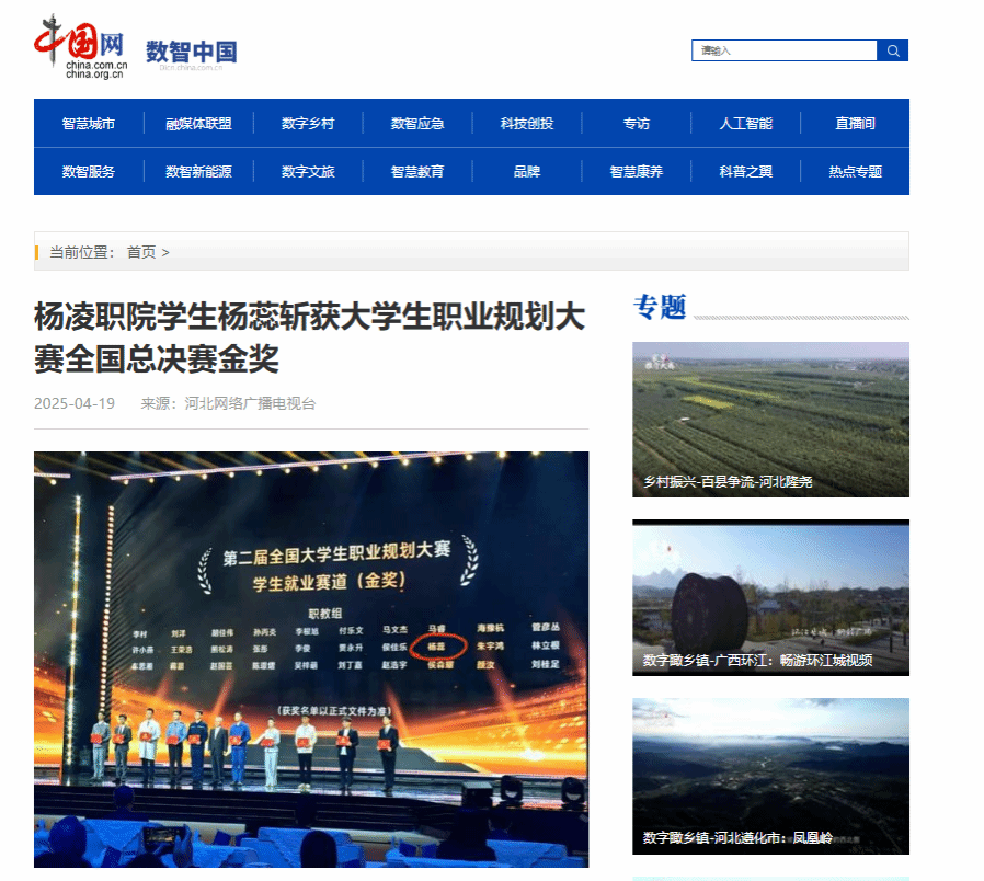 【中国网】杨凌职院学生杨蕊斩获大学生职业规划大赛全国总决赛金奖