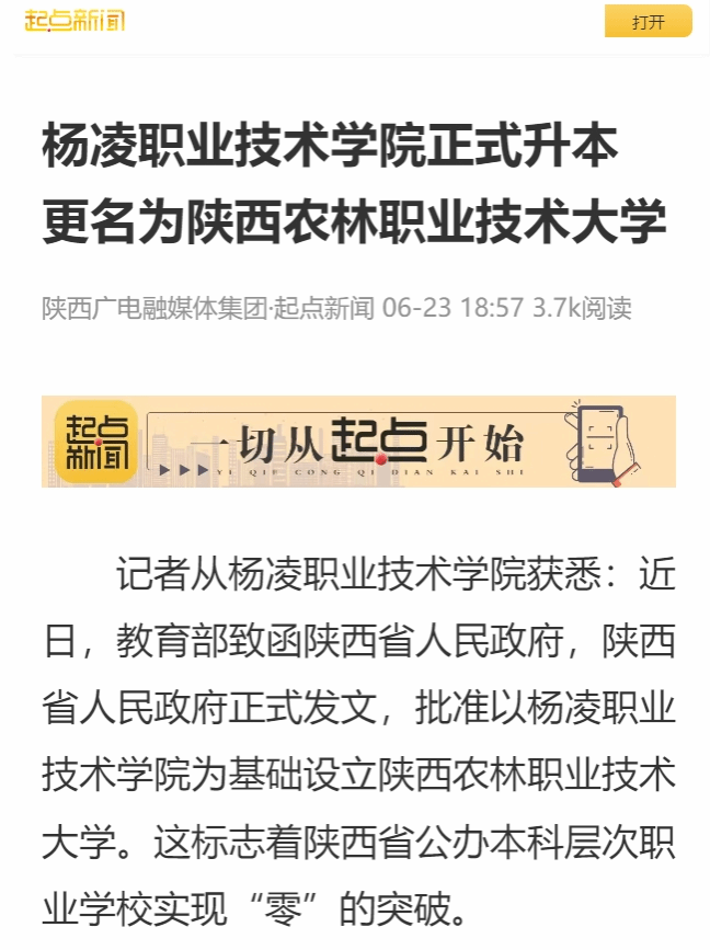 立足新起点,奋进新征程。陕西农林职业技术大学将始终坚持职业教育办学定位,注重内涵发展、创新发展,加强对本科层次职业教育的研究与探索,推动职业教育教学实践与产业发展、技术变革、人才需求的紧密对接,着力培养高层次技术技能人才,努力建成“中国特色、世界一流职业大学”,为干旱半干旱地区现代农业发展提供强有力的科技和人才支撑,为陕西经济社会高质量发展作出更大贡献,奋力书写学校竞进有为的新答卷。(起点新闻记者:李伟)