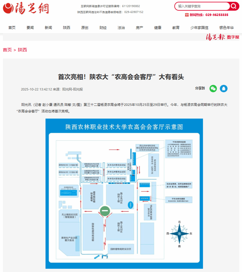 阳光讯(记者 赵小康 通讯员 陆敏 文/图)第三十二届杨凌农高会将于2025年10月25日至29日举行。今年,与杨凌农高会同期举行的陕农大“农高会会客厅”活动也将首次亮相。