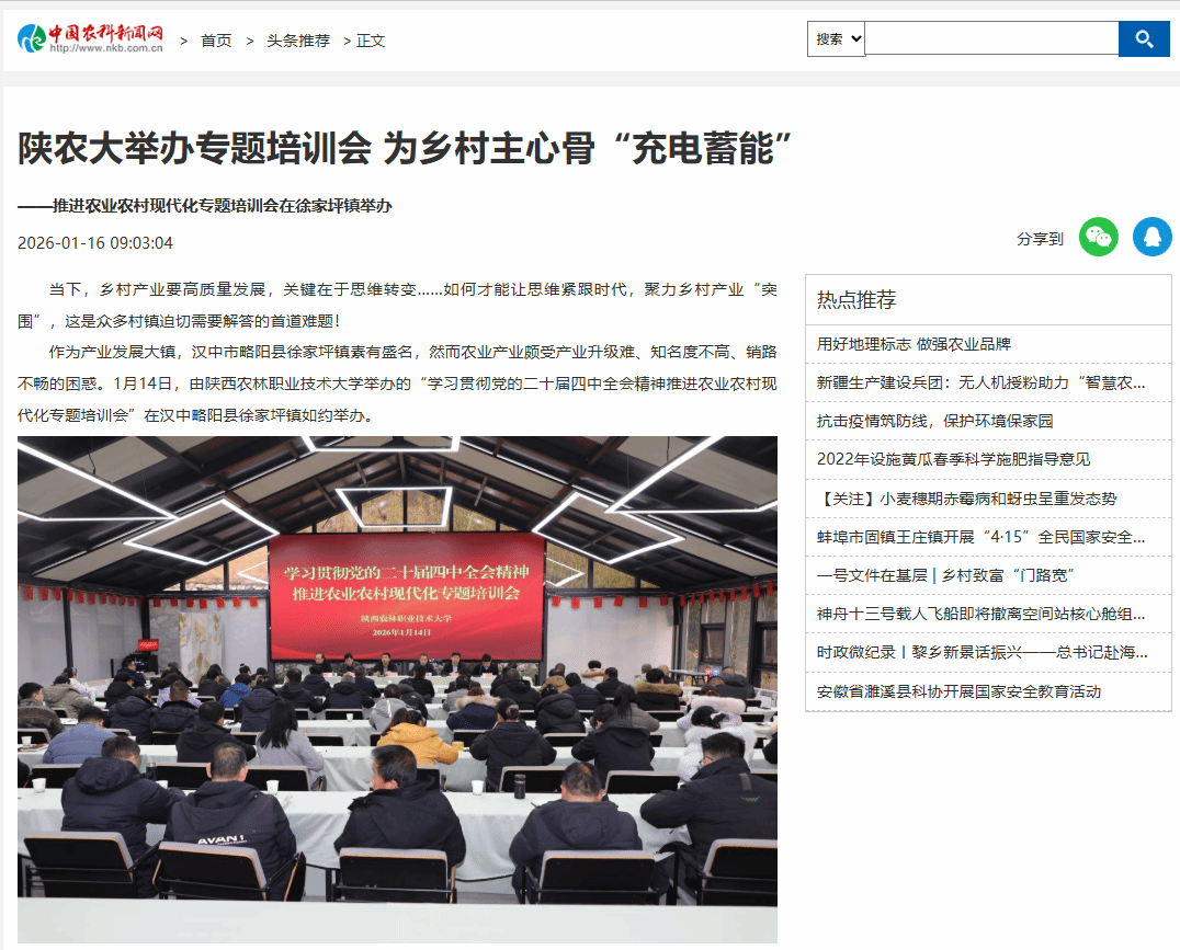 作为产业发展大镇,汉中市略阳县徐家坪镇素有盛名,然而农业产业颇受产业升级难、知名度不高、销路不畅的困惑。1月14日,由陕西农林职业技术大学举办的“学习贯彻党的二十届四中全会精神推进农业农村现代化专题培训会”在汉中略阳县徐家坪镇如约举办。