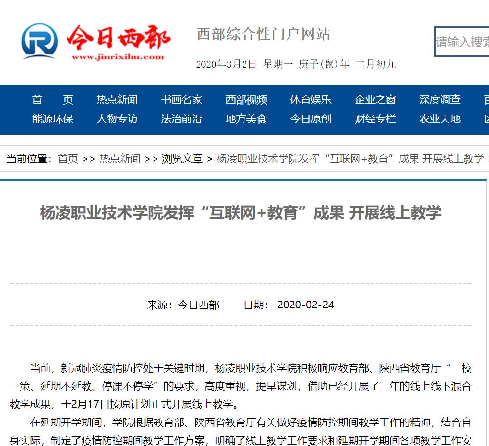 当前,新冠肺炎疫情防控处于关键时期,杨凌职院技术学院积极响应教育部、省教育厅“一校一策、延期不延教、停课不停学”的要求,高度重视,提早谋划,借助已经开展了三年的线上线下混合教学成果,于2月17日按原计划正式开展线上教学。