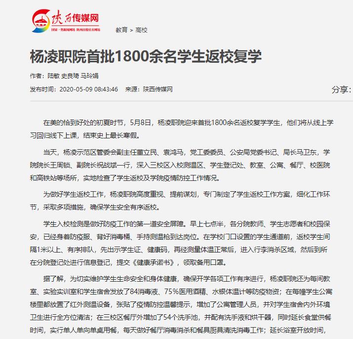 在美的恰到好处的初夏时节,5月8日,杨凌职院迎来首批1800余名返校复学学生,他们将从线上学习回归线下上课,结束史上最长寒假。