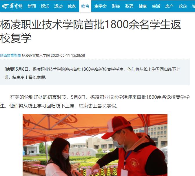 【华商网】杨凌职业技术学院首批1800余名学生返校复学