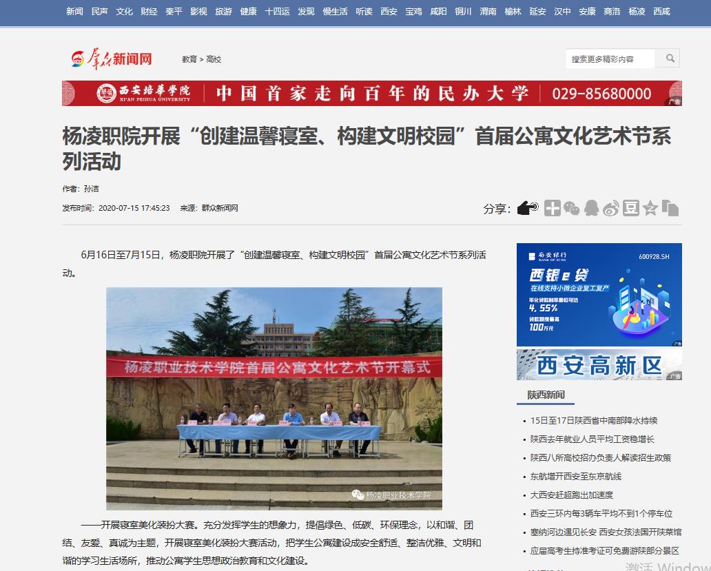 【群众新闻网】杨凌职院开展“创建温馨寝室、构建文明校园”首届公寓文化艺术节系列活动