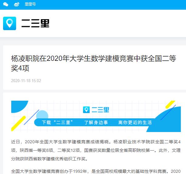 下一条:【群众新闻网】杨凌职业技术学院在2020年大学生数学建模竞赛中获全国二等奖4项