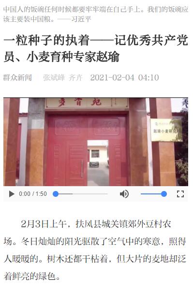 【群众新闻】一粒种子的执着——记优秀共产党员、小麦育种专家赵瑜