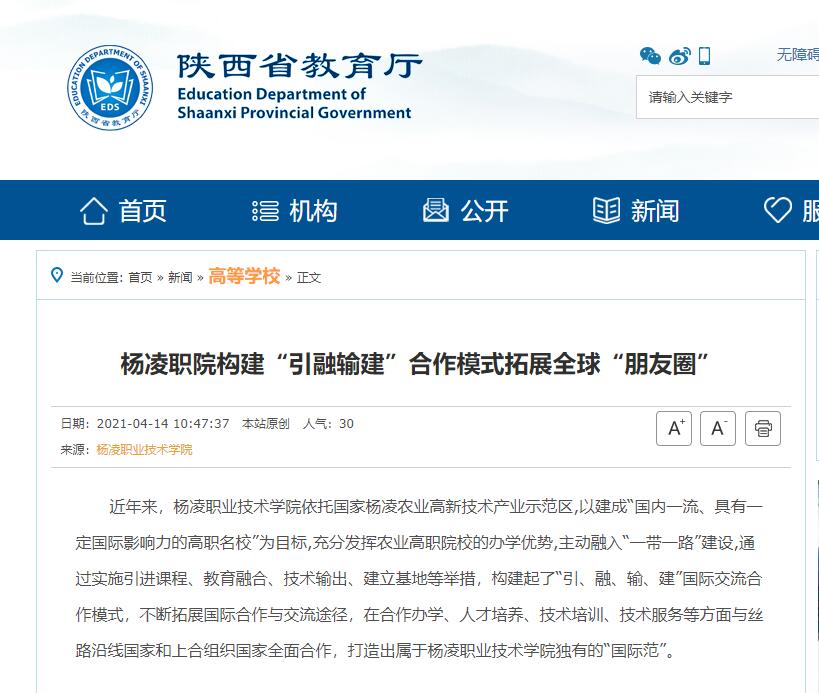 【陕西省教育厅】杨凌职院构建“引融输建”合作模式拓展全球“朋友圈”