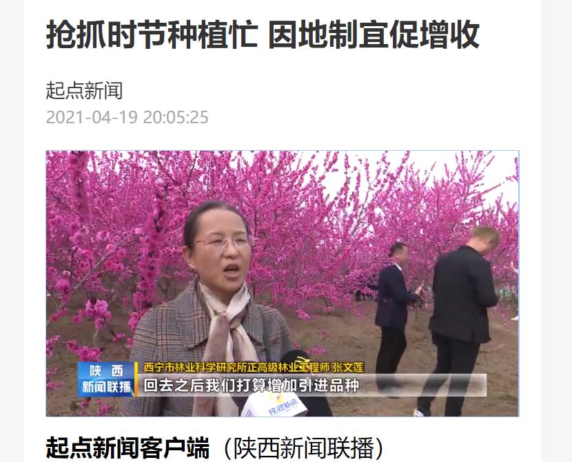 西宁市林业科学研究所正高级林业工程师 张文莲:回去之后我们打算增加引进品种,进一步进行筛选、推广,在我们青藏高原打算把桃花的文化和桃花的品种也推广发扬光大。