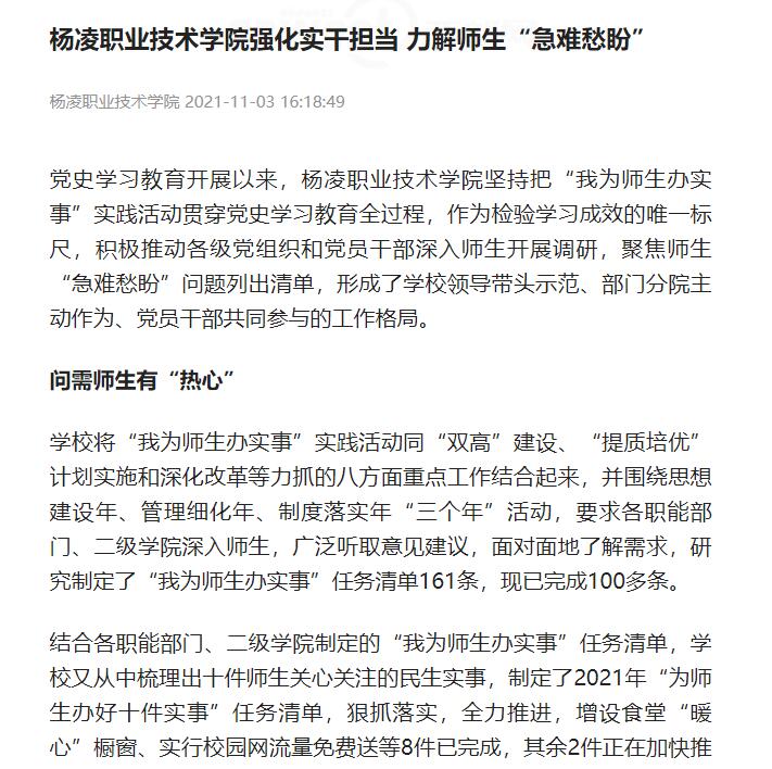 【陕西头条】杨凌职业技术学院强化实干担当 力解师生“急难愁盼”