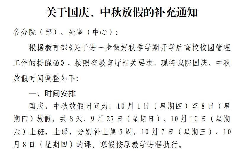 关于国庆、中秋放假的通知