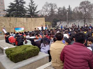 活动开始,先由主持人讲解说明目前学校中存在的诸多环境卫生问题,并且扼要介绍了这些问题所带来的后果。接下来由学工办崔建鹏老师发表讲话,他从校园环境所能反映出的学生精神风貌为出发点,围绕校园环境卫生所代表的个人素质与修养,宿舍卫生与身体健康向同学们提出了意见和期望。接下来是全体参与活动的同学全体起立进行宣誓,宣誓自觉维护校园环境卫生,将活动推上了高潮部分。