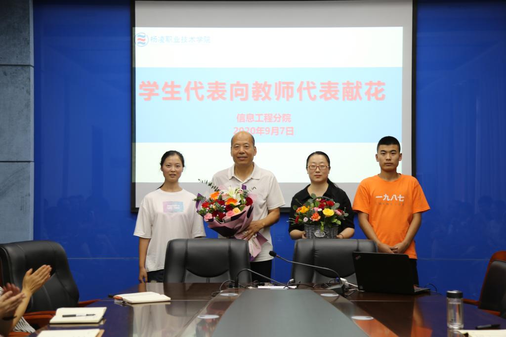 会上,两名分院学生代表向分院教师鲜花,并代表分院全体同学向各位老师们表达了节日的祝福。
