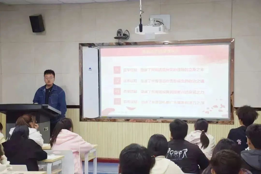 我院团委书记任争峰老师、副书记赵朋波老师面向团干部、团员代表、入团积极分子,分别以《百年青年运动史》《弘扬延安精神 传承红色基因》为主题,用团员青年听得懂、易接受的语言和方式宣传党的最新理论成果、党的青年运动史、新时代党和国家事业取得的历史性成就和发生的历史性变革、红色基因传承等内容。
