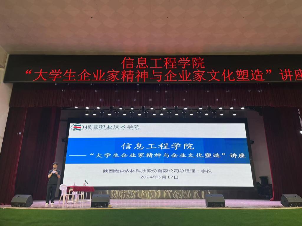 5月17日,信息工程学院在南校区学生活动中心举办“大学生企业家精神与企业家文化塑造”讲座,邀请陕西垚森农林科技股份有限公司总经理李松担任主讲嘉宾,信息工程学院2022级全体学生参加了本次讲座。
