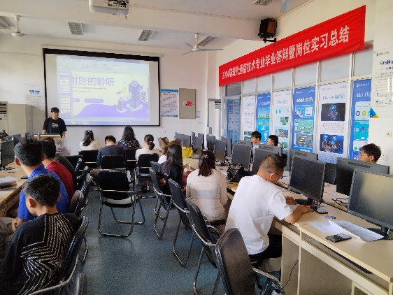 本次答辩会由学生汇报和教师提问两个环节组成。学生们结合PPT,以图文并茂的形式,从实习目的、实习单位介绍、岗位工作、实习内容以及实习总结与体会等方面进行了详细汇报。答辩过程中,每位实习生都展示出了卓越的表现和专业素养,充分证明了他们能够将学校所学的知识与技能灵活运用于实际工作中。通过实习,他们在解决问题、交际沟通、团队协作和职业规划等方面的能力都有了显著提升。在教师提问环节,学校指导教师针对每位学生的实习情况提出了相关问题,学生们进行了现场解答,答辩氛围既专业严谨,又温馨和谐。院长陈高锋也到场对本次答辩会进行了检查和观摩。