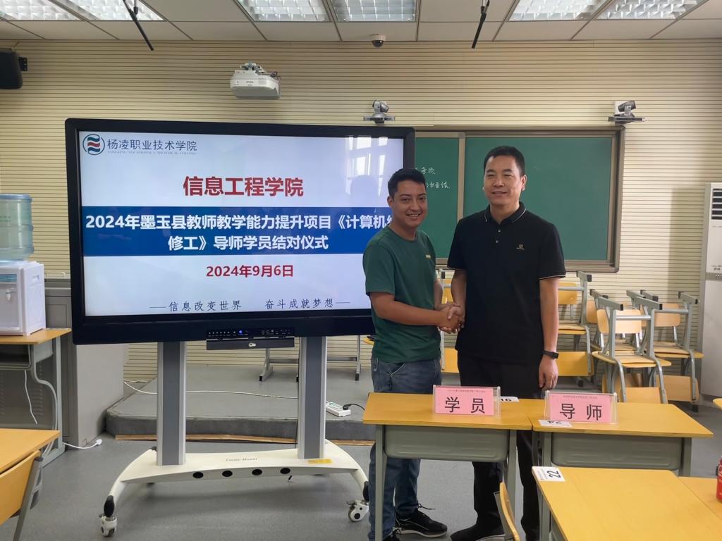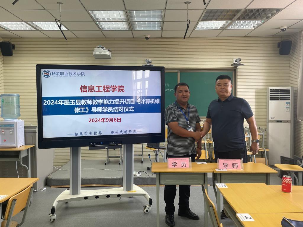 9月6日上午,信息工程学院在醒钟楼D座628举行2024年墨玉县教师能力提升计算机维修项目导师学员结对仪式,学院院长陈高锋、副院长熊刚、网络教研室主任冯春卫、动漫教研室主任黄婉林、教师代表以及墨玉县16位学员等参加,仪式由陈高锋主持。