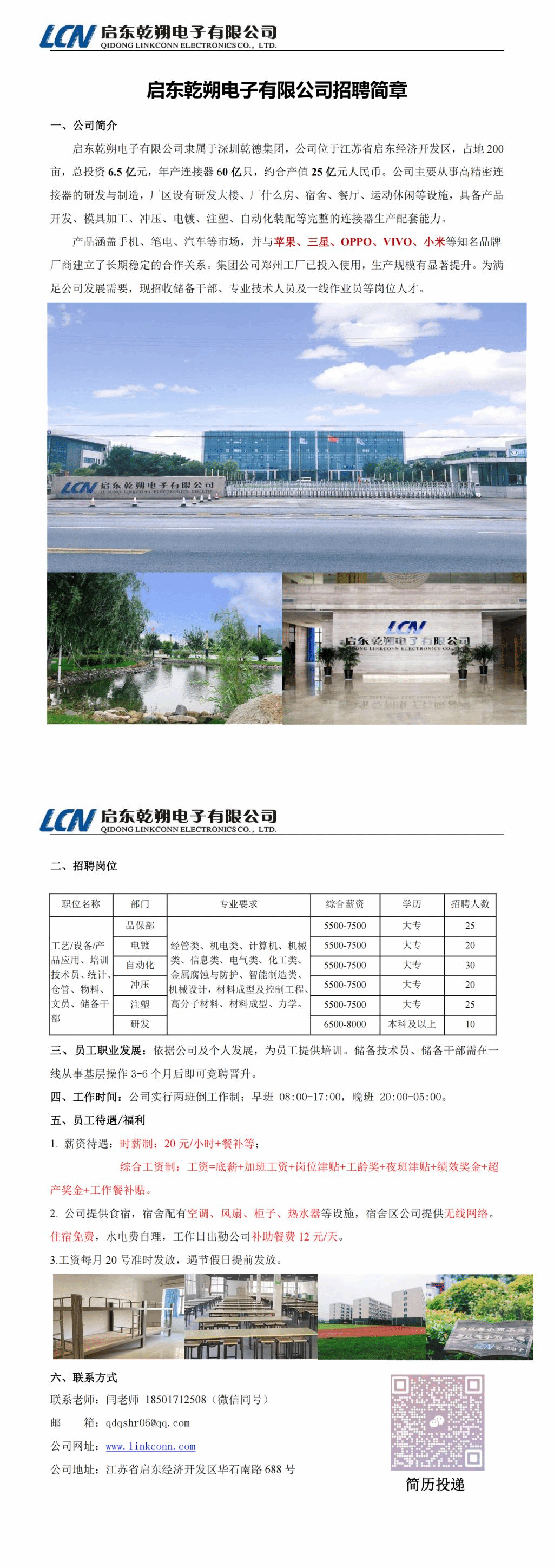 【招聘信息】启东乾朔电子有限公司招聘简章