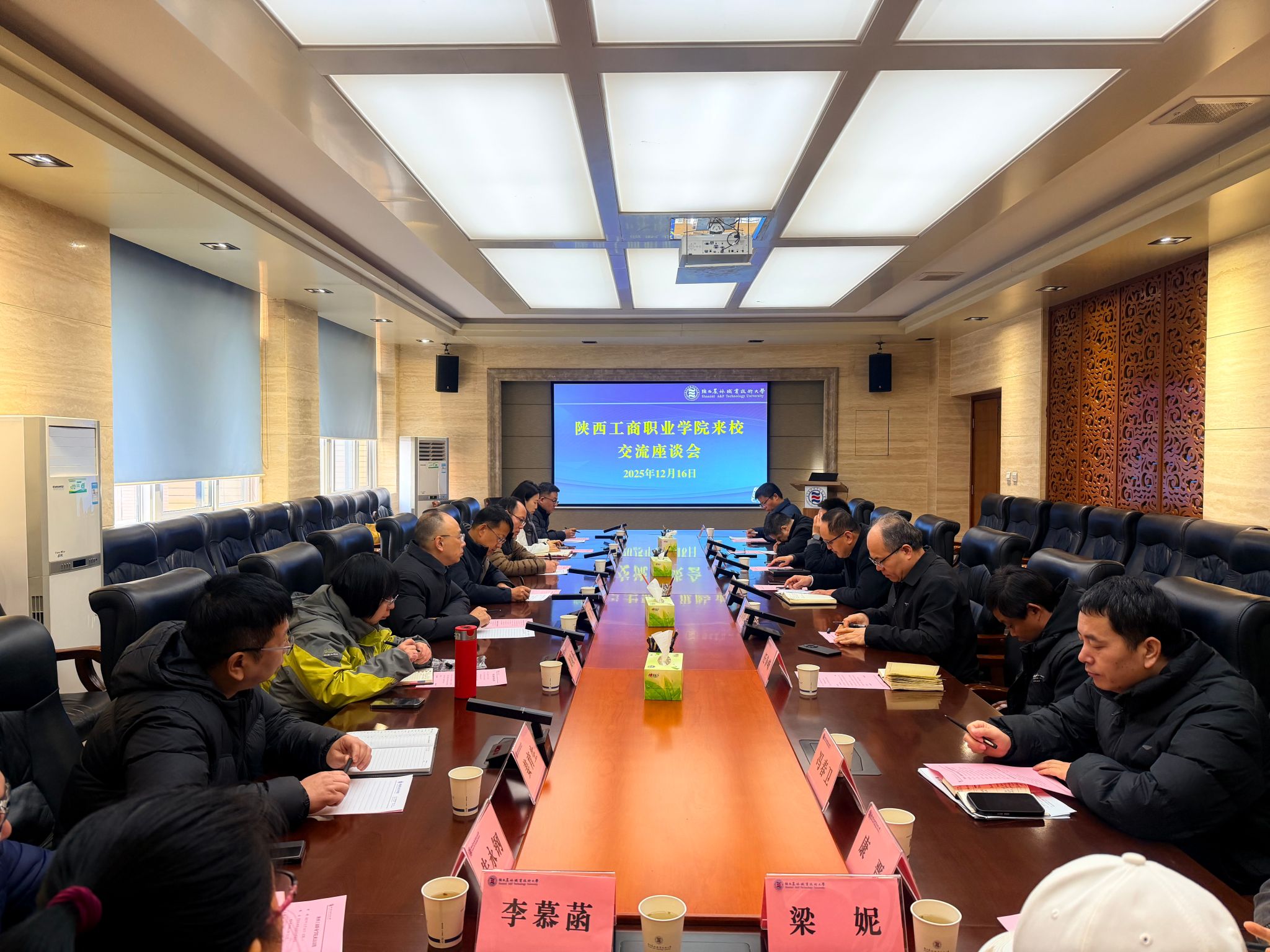 2025年12月16日,陕西工商职业学院信息与未来技术学院院长贺国旗、党总支书记李彤等一行来我校考察交流。信息工程学院院长陈高锋、党总支书记吴高潮等学院领导及各教研室主任参加座谈。