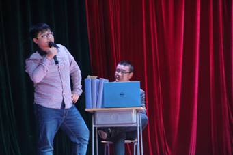 在接下来近两个小时的演出中,分院动漫社天马行空的cosplay歌舞秀将动漫艺术演绎的生动活泼,大学生艺术团歌手带来的独唱唱出了地道的原汁原味,分院艺术团带来的爵士舞动感十足,风趣幽默的小品将职场演绎的忍俊不禁,还有妙语连珠的相声让现场气氛锦上添花。此外还有力量与美结合的瑜伽表演,帅气潇洒的乐队演唱,形象爆笑的哑剧。