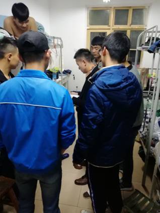 检查组重点检查了分院2017级新生所在的北校区所有宿舍。每到一处,冉博文老师和学生干部都进行了仔细检查,针对容易被忽视的卫生死角也进行了集中检查,同时重点检查了寝室晚休纪律情况、供电设施规范使用情况、违规大功率电器的使用情况、宿舍禁烟禁酒执行情况等。对在检查中发现的问题一一进行了整改,对检查过程中的学生诉求进行了一一登记。