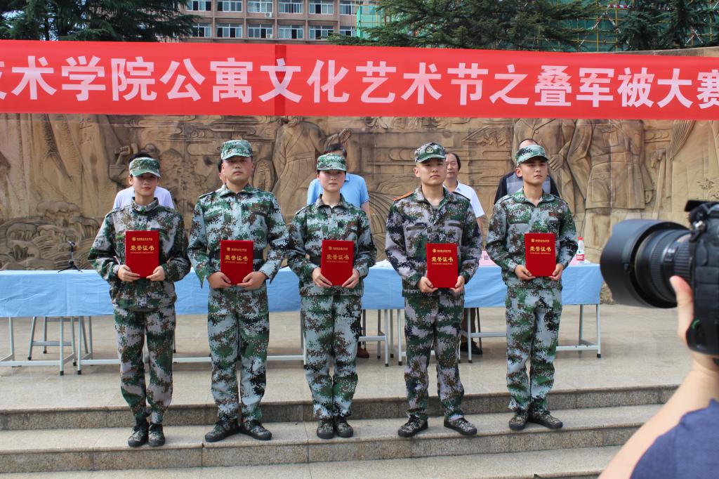 为了丰富校园生活,促进同学之间的沟通和交流,加强公寓精神文明建设,体现宿舍的良好风气,提高同学们内务整理水平,6月29日下午,在南校1934广场,信息工程分院组织4名同学参加了学院公寓文化艺术节举办的“叠军被大赛”,并取得佳绩。