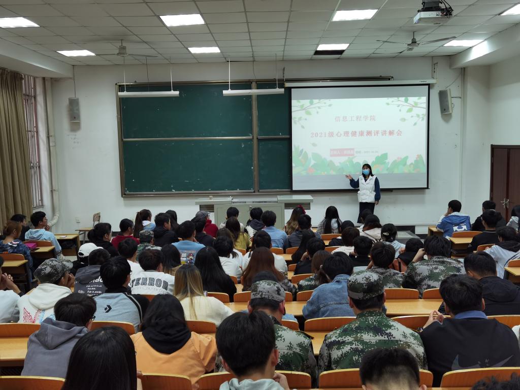 为进一步提高我院2021级大学生心理健康教育的针对性和实效性,加强大学生心理危机预防和干预工作,宣传普及心理健康知识,深入开展心理健康教育,我院于2021年10月19日下午14:30在致用楼BOA-117教室举行了心理健康知识及心理测评讲解会,由学生工作办公室辅导员梁晶晶主讲,2021级各班心理委员及部分班委共计九十二人参加。