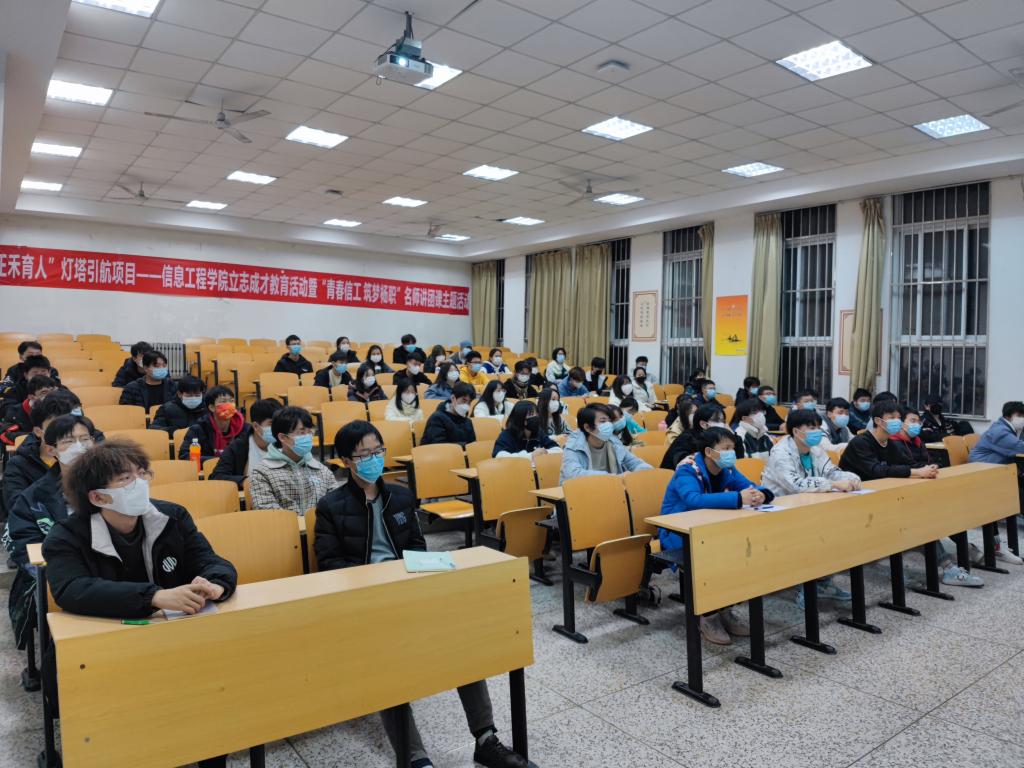 为加强团员青年思想引领,提升学生干部素质能力,落实学校“正禾”育人工程的发展目标,建设好思想政治教育的主阵地和主渠道,2021年12月20日,我院开展“正禾育人”灯塔引航项目——信息工程学院立志成才教育活动暨“青春信工 筑梦杨职”名师讲团课主题活动第二讲,本次讲座由郭雄伟老师主讲、辅导员赵朋波主持。