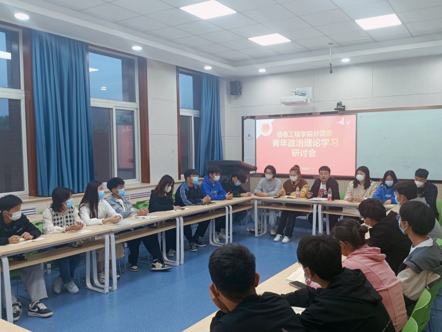 为进一步贯彻落实共青团十八届六中全会精神,系统推进全面从严治团,更好履行共青团作为党的助手和后备军的职责使命,着力提高政治站位,2022年4月1日晚于行知楼BOB-319教室,信息工程学院分团委组织召开了青年政治理论学习研讨会。分团委副书记赵朋波老师及分团委主要学生干部、2021级团支书参加了此次会议。