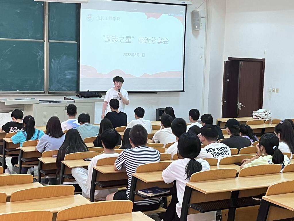 为充分挖掘资助育人功能,有效发挥优秀学生典型的示范引领作用,6月1日下午,信息工程学院举办“励志之星”事迹分享会。邀请计算机19059班国家励志奖学金获得者王宁波做经验分享,2021级计算机应用技术专业40名学生代表参加会议。