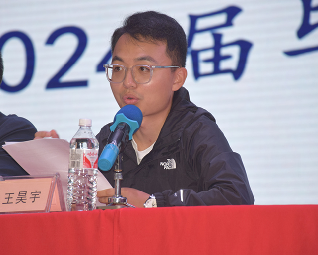 任争峰在主持时强调,学院高度重视本届毕业生就业工作,选优配强就业辅导员工作队伍,从就业形势入手,分析了当前社会宏观背景下就业所面临的挑战,并提醒同学们:一方面要端正就业态度,提高找工作的紧迫感;另一方面要认清形势,坚定信心,明确目标,放平心态,主动出击,全力以赴迎接秋招关键期。鼓励同学们要突破传统的思维观念,及时转变就业观念,准确了解自己与社会的需求,找准定位,放远眼光,积极就业;随后,辅导员王昊宇,通过列举各个专业往届毕业生就业的总体情况,动员毕业生们在“金九银十”的关键节点上,要把握校招季的每一个机会。辅导员李宣荣就2024届毕业生生源核对等系统问题与大家进行了详细阐述。