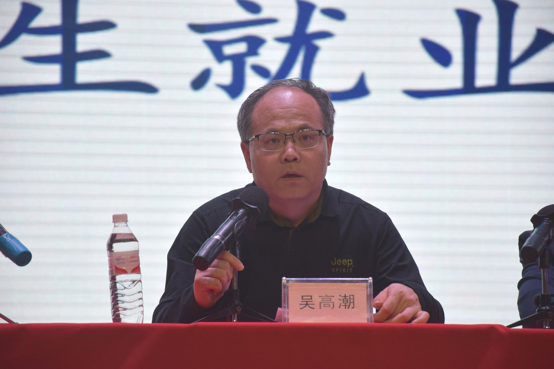 接着,吴高潮对全体毕业生进行了动员讲话,他表示,2024届毕业生学子即将面临的就业压力不容乐观。首先,他从就业工作的重要性出发,向大家讲明要正视现实、面对现实社会困境。尤其是对待学院的就业工作,更要有主动就业的心态,牢固树立“先就业再择业”的就业理念,不管是考学还是就业,都应找到一个准确的就业定位,在心态上积极准备,要有迎难而上、战胜困难的决心与信心。其次,他还要求大家要在自己的简历制作上、个人的成果展示上多下功夫,作为即将走向工作岗位的学生,要有敢于经营自己、宣传自己、推荐自己的能力。面对就业,要认清形势,善于洞察经济发展大势,把握时机,主动出击,抓住秋招的工作机遇,跨出就业工作的一大步,并祝愿全体毕业生都能拥有让自己满意、家长满意、社会满意的美好前途。