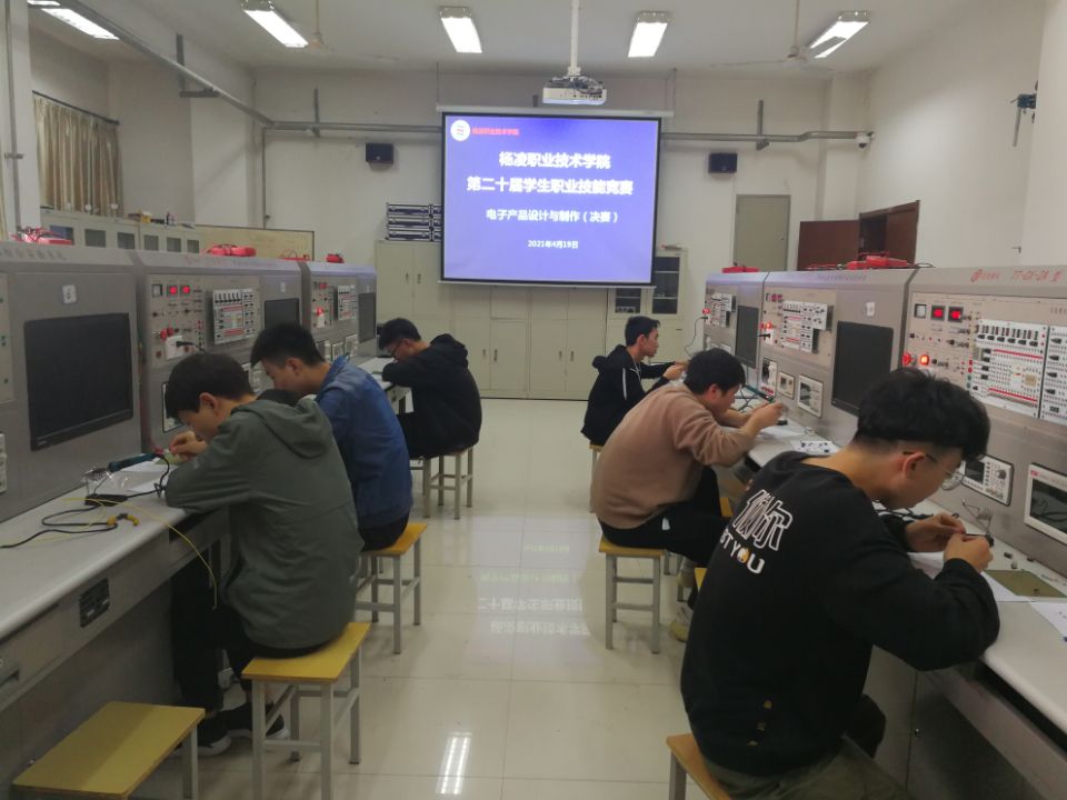 2021年4月19日,第二十届学生职业技能竞赛项目“电子产品设计与制作”决赛环节在醒钟楼NOD625模拟电子技术实训室成功举行。