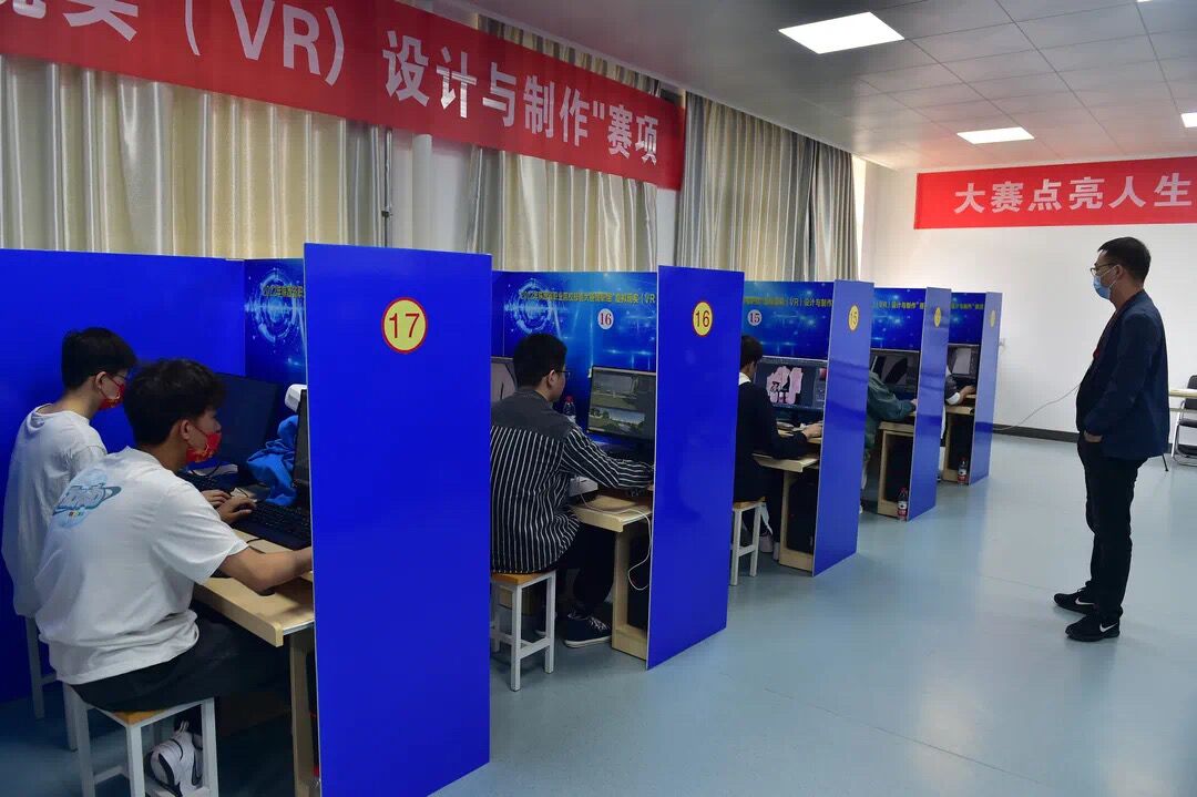 4月9日至10日,由我校承办、中科泰岳科技有限公司协办,信息工程学院协同筹备的2022年陕西省高等职业院校技能大赛“虚拟现实(VR)设计与制作”赛项在学校南校区开赛。本次比赛共有省内14所高职院校27支代表队,共计54名选手参赛。