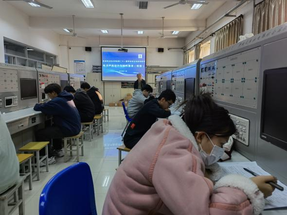 11月26日,第二十一届学生职业技能竞赛节“电子产品设计与制作”竞赛项目的决赛在醒钟楼NOD623模拟电子技术实训室成功举行。