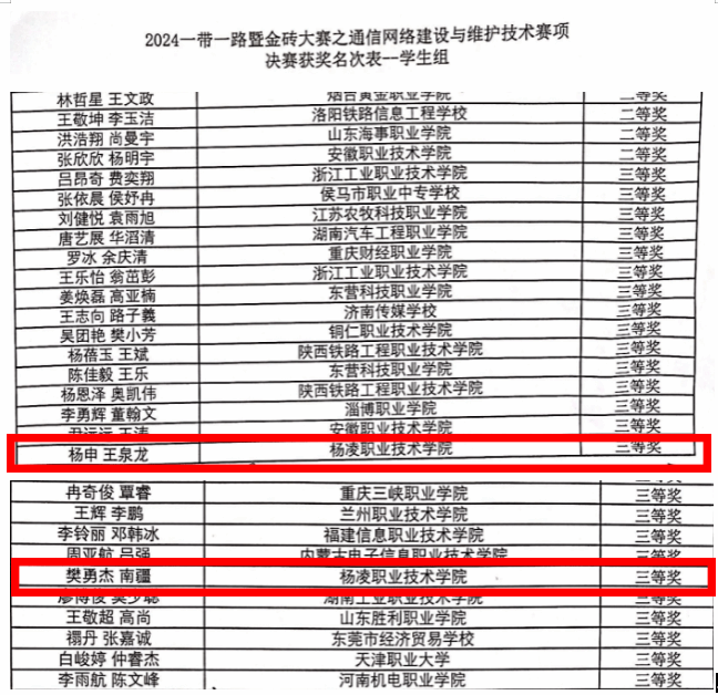 2024年12月7日至8日,2024一带一路暨金砖国家技能发展与技术创新大赛之通信网络建设与维护技术赛项国内赛决赛在山东潍坊开赛。本次大赛共有来自全国各地的110支队伍,220余名选手参加。我校信息工程学院樊勇杰、南疆,王泉龙、杨申同学在此次竞赛中荣获三等奖。