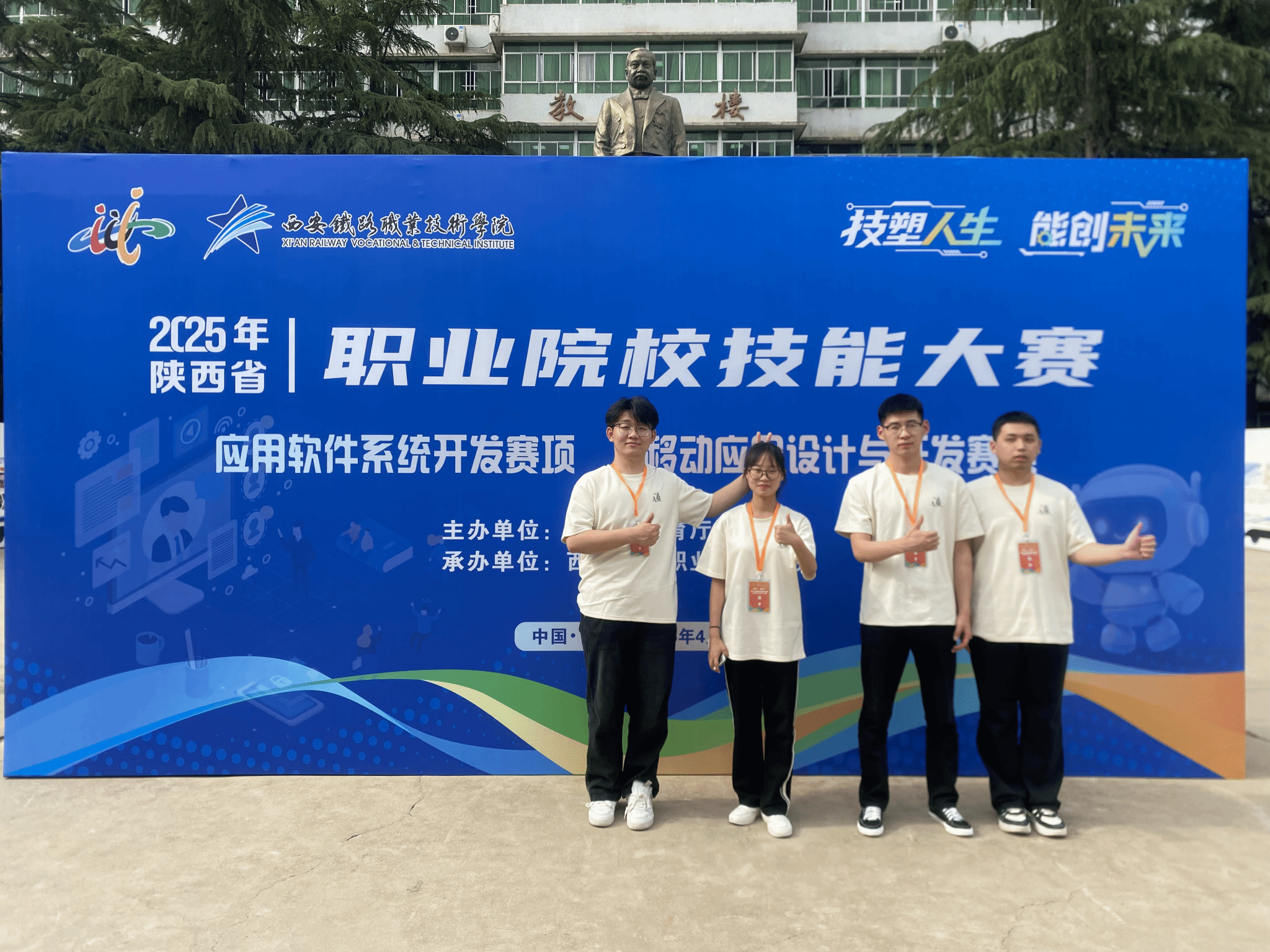 由陕西省教育厅主办、西安铁路职业技术学院承办的2025年陕西省职业院校技能大赛"应用软件系统开发"赛项于4月27日圆满落幕。本次大赛旨在深化职业教育改革,推动产教融合,培养高素质技术技能人才,吸引了来自全省职业院校的17支代表队同台竞技,展现了陕西省职业教育的丰硕成果和青年学子的卓越风采。我院教师任丽媛、曹梦琦带领23级学生沈冠旭、张鹏、张永意、段家恒代表我校参赛。