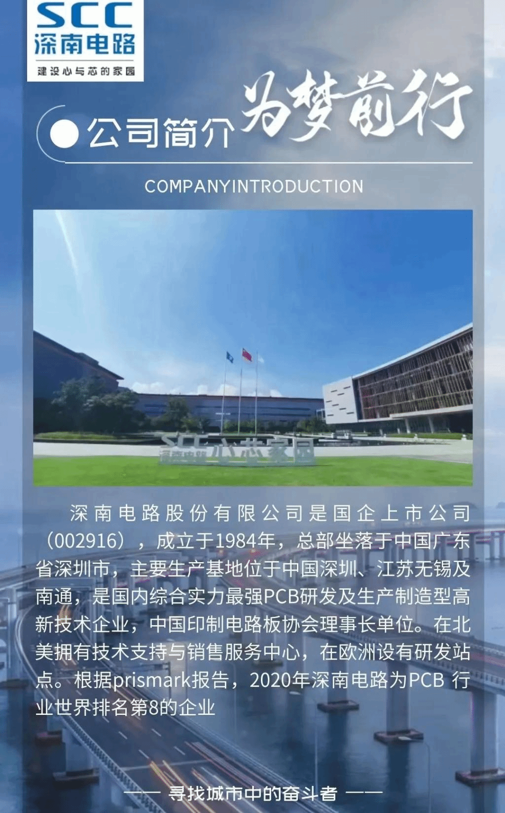 深南电路股份有限公司是国企上市公司(002916),成立于1984年,总部坐落于中国广东省深圳市,主要生产基地位于中国深圳、江苏无锡及南通,是国内综合实力最强PCB研发及生产制造型高新技术企业,中国印制电路板协会理事长单位。在北美拥有技术支持与销售服务中心,在欧洲设有研发站点。根据prismark报告,2020年深南电路为PCB行业世界排名第8的企业。
