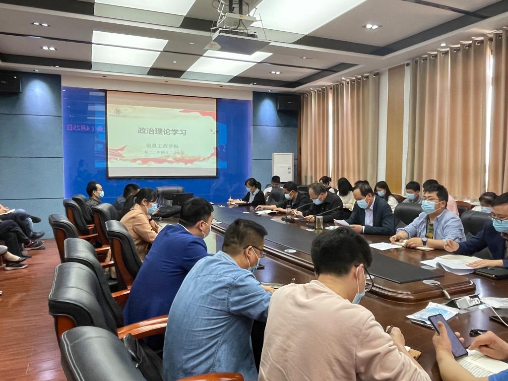 按照学院党总支政治理论学习计划安排,4月25日下午2点30分,信息工程学院组织广大教职工在秦风楼4楼会议室开展了政治理论学习活动。