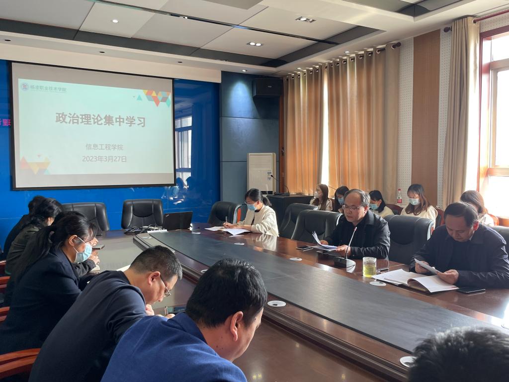按照学院党总支政治理论学习计划安排,3月27日下午3点信息工程学院组织广大教职工在秦风楼4楼会议室开展政治理论学习活动,要求大家认真学习,积极讨论,做好学习笔记。
