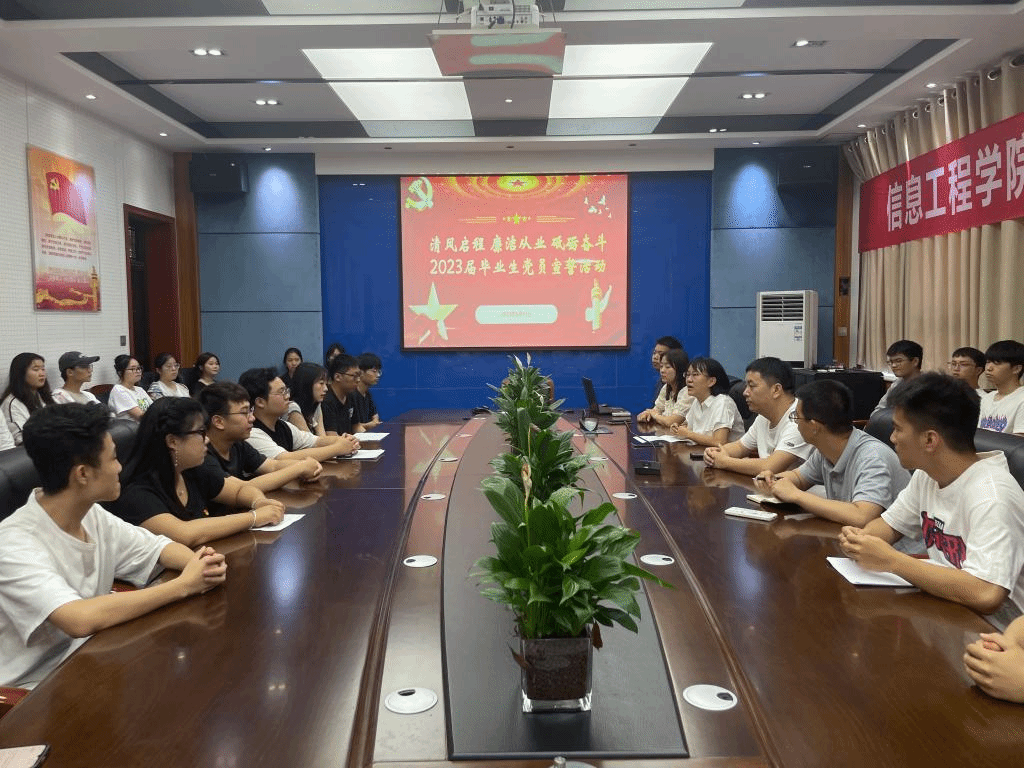 为进一步做好毕业生党员的思想教育,坚定学生党员的理想信念,6月13日下午,信息工程学院党总支在秦风楼四楼会议室组织举办了2023届毕业生党员宣誓活动。会议由信息工程学院党务秘书梁晶晶主持,信息工程学院网络技术党支部书记冯春卫、各支部组织委员、2023届返校毕业生党员参加了此次活动。