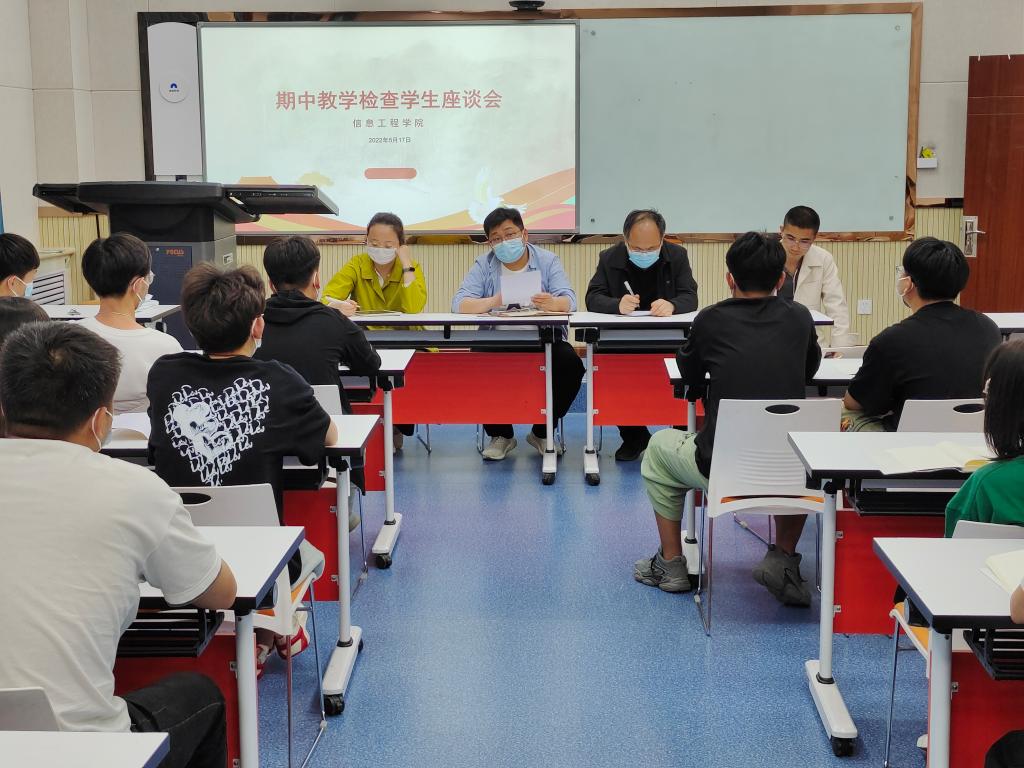 根据学校要求,为深入了解教学运行情况,贴近学生实际,2022年5月17日晚,信息工程学院召开期中教学检查学生座谈会。座谈会分南北校区分别举行,学院2020级、2021级47个班级的学生代表、分院领导、两办工作人员、文理学院教师代表参加了本次座谈会。