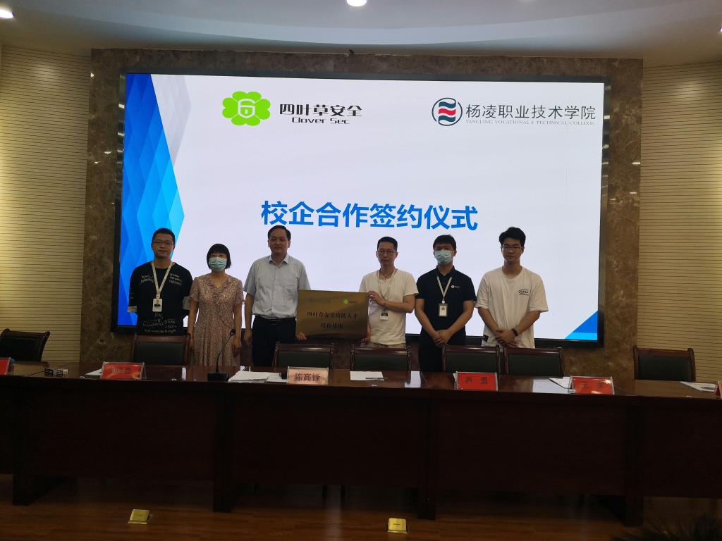 2022年06月13日上午,杨凌职业技术学院信息工程学院与西安四叶草信息技术有限公司在学校学术报告厅举行校企合作签约仪式,同时为双方合作筹建的人才培训基地揭牌。出席此次签约与揭牌仪式的有信息工程学院院长陈高锋,信息工程学院办公室主任王巍、信息安全课程负责人刘维嘉副教授以及四叶草公司市场部经理芦勇等一行,仪式由院办主任王巍主持。