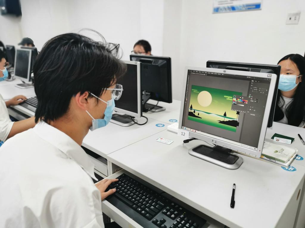 2022年6月29-30日,动漫制作技术专业2021级5个班学生在北校区B1403实训室完成了考试改革课程《平面设计与制作》的期末总结性考核。