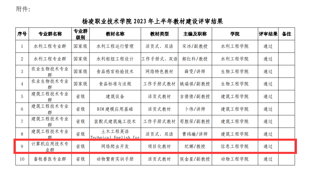 【双高建设】信息工程学院1本教材通过学校2023年“双高”教材建设评审