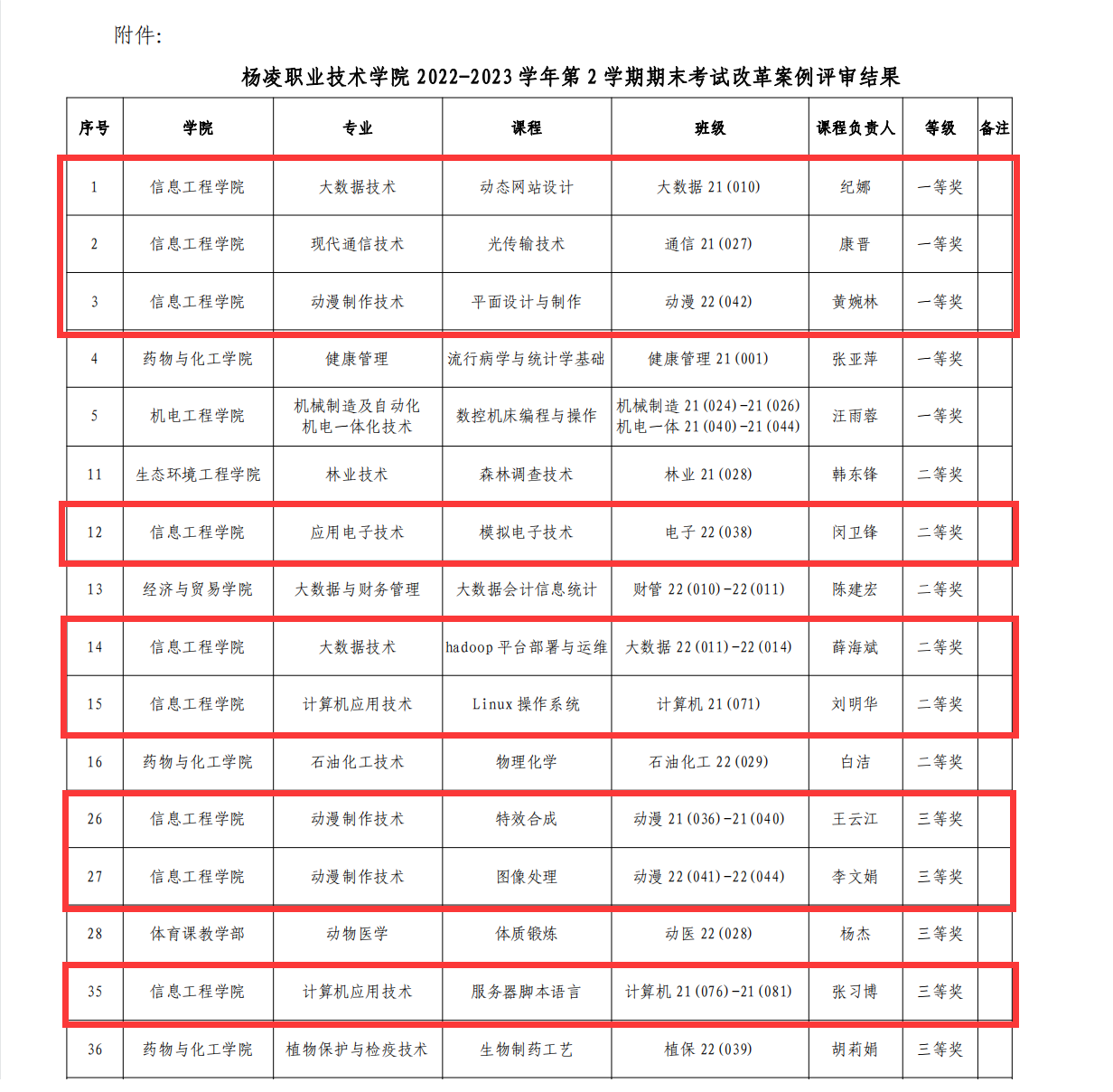 8月28日,学校公布2022-2023学年第2学期期末考试改革案例评审结果,我院9个案例获评优秀,其中一等奖3个,二等奖3个,三等奖3个。