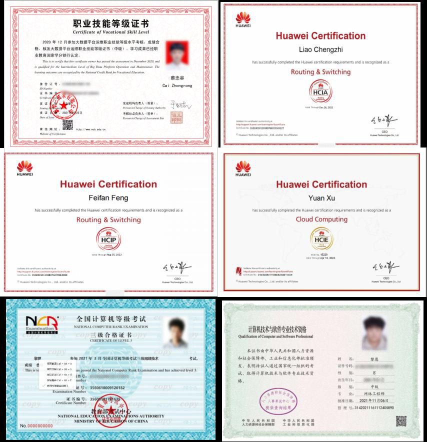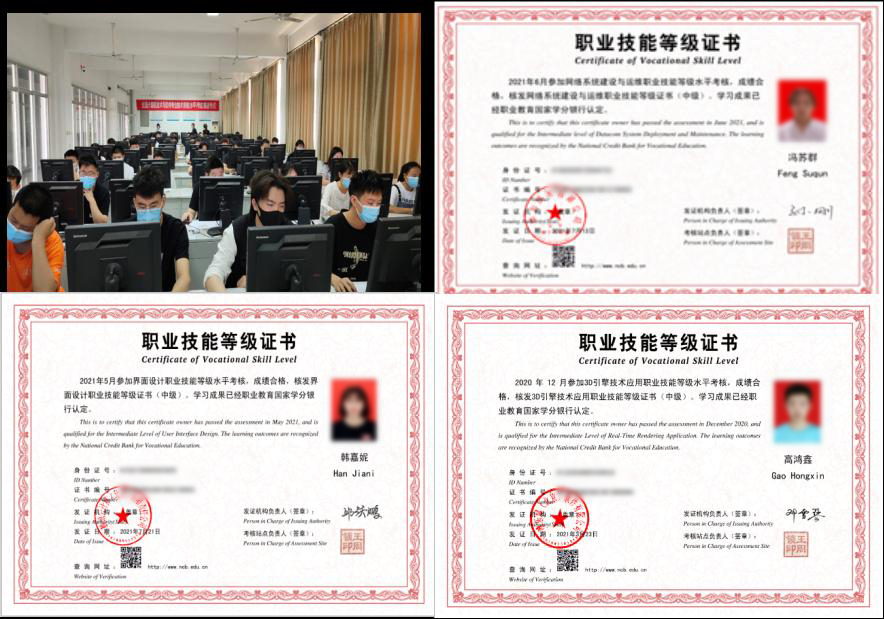 考试认证常态。学院设有面向学生和社会考生计算机技术与软件专业技术资格(水平)考试等国家级考试考点。设立华为认证考试中心,开展华为认证培训、认证考试。校内“1+X”职业技能等级认证中心现已开展了网络系统建设与运维、3D引擎技术应用、大数据平台运维、界面设计4个项目的认证培训、考试。